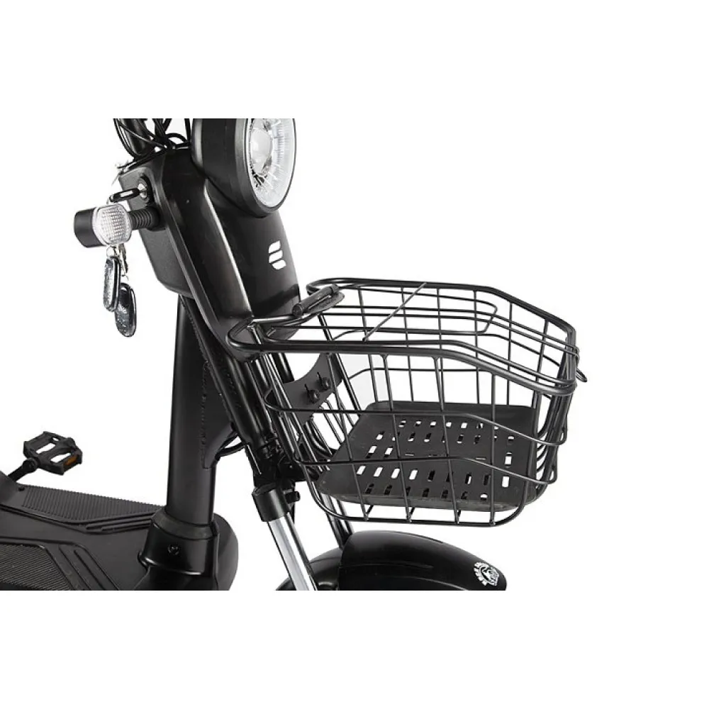 Мощность двигателя составляет 350 Вт, достаточная для развития скорости 25 км/час. Удобство и комфорт езды обеспечены мягким вместительным сиденьем, рассчитанным на двоих. Повторяя анатомические части тела материал изготовления и конструкционные особенности сиденья снижают нагрузку на позвоночник, снимают утомление.