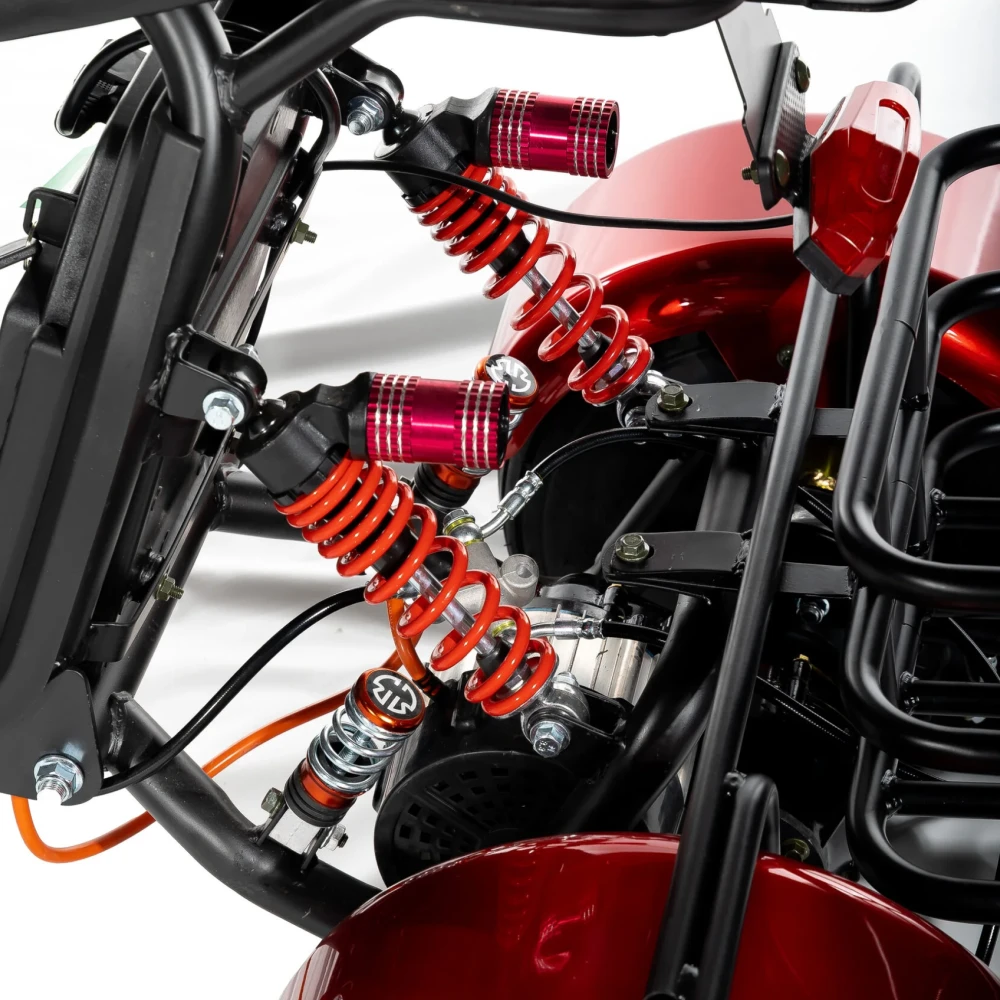 Электроскутер CityCoco GT X5 Trike с красной расцветкой облегчает езду, благодаря стабильности трех колес, а также мягкому кожаному сиденью для комфорта. Вам не нужно беспокоиться о скорости или безопасности, так как скутер оснащен дисковыми тормозами на обоих осях и прорезиненными колесами, которые повышают устойчивость и позволяют чувствовать себя уверенно на любой дороге.
