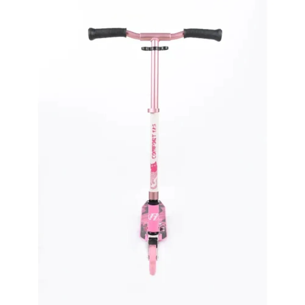 САМОКАТ COMFORT 125R 2021 розовый – современный вариант детского эргономичного скутера получил особую популярность на отечественном рынке. Выпуск новой модели удивил ребят, увеличил количество пользователей. Родители маленьких принцесс без ума от технических характеристик модели.
